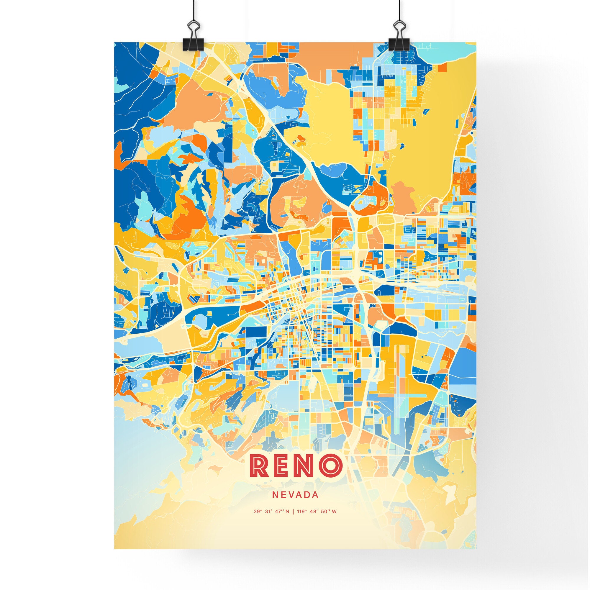 Colorful Reno Nevada Blue Orange Fine Art Print Reno Usa City Etsy